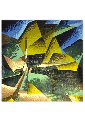 print made from woodblock and Linoleum block to be a "Woodscape,"