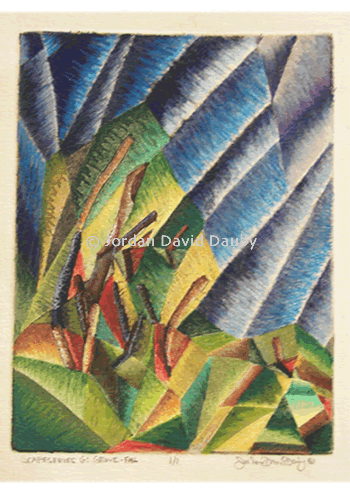 Coloration of this image far surpasses the original monochromatic version printed many years earlier. The copper plate was never editioned although several proofs were printed, even a couple on handmade paper. In an exception to my normal rule, I sold the copper plate which was used for this image to a client who also purchased one of my Scape Constructions.